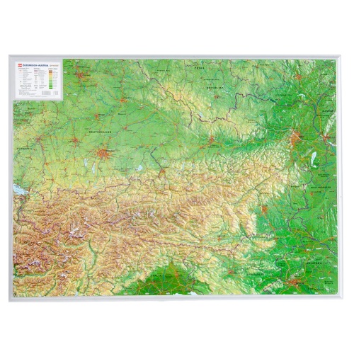 Ένας μοναδικός στο είδος του Ανάγλυφος Τρισδιάστατος Χάρτης της Αυστρίας (3D), ο οποίος δίνει νέες διαστάσεις στη χαρτογραφία.