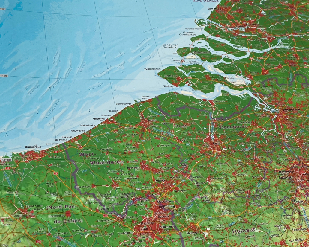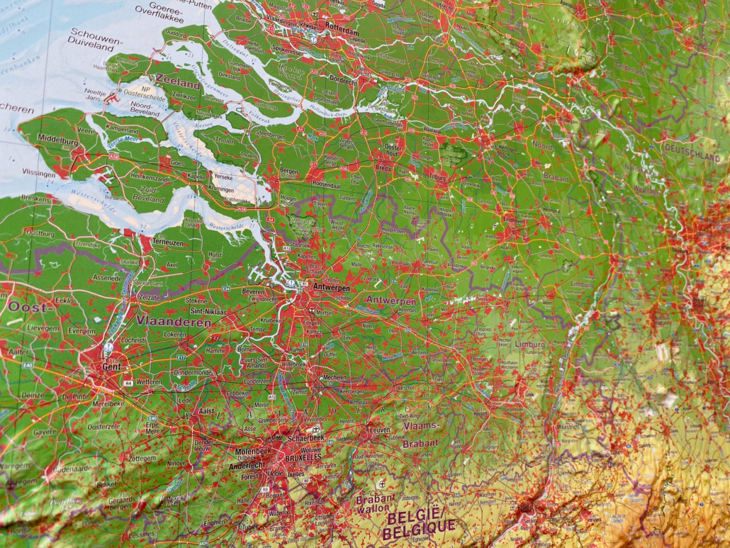 Ένας μοναδικός στο είδος του Ανάγλυφος Τρισδιάστατος Χάρτης της Μπενελούξ (3D), ο οποίος δίνει νέες διαστάσεις στη χαρτογραφία.
