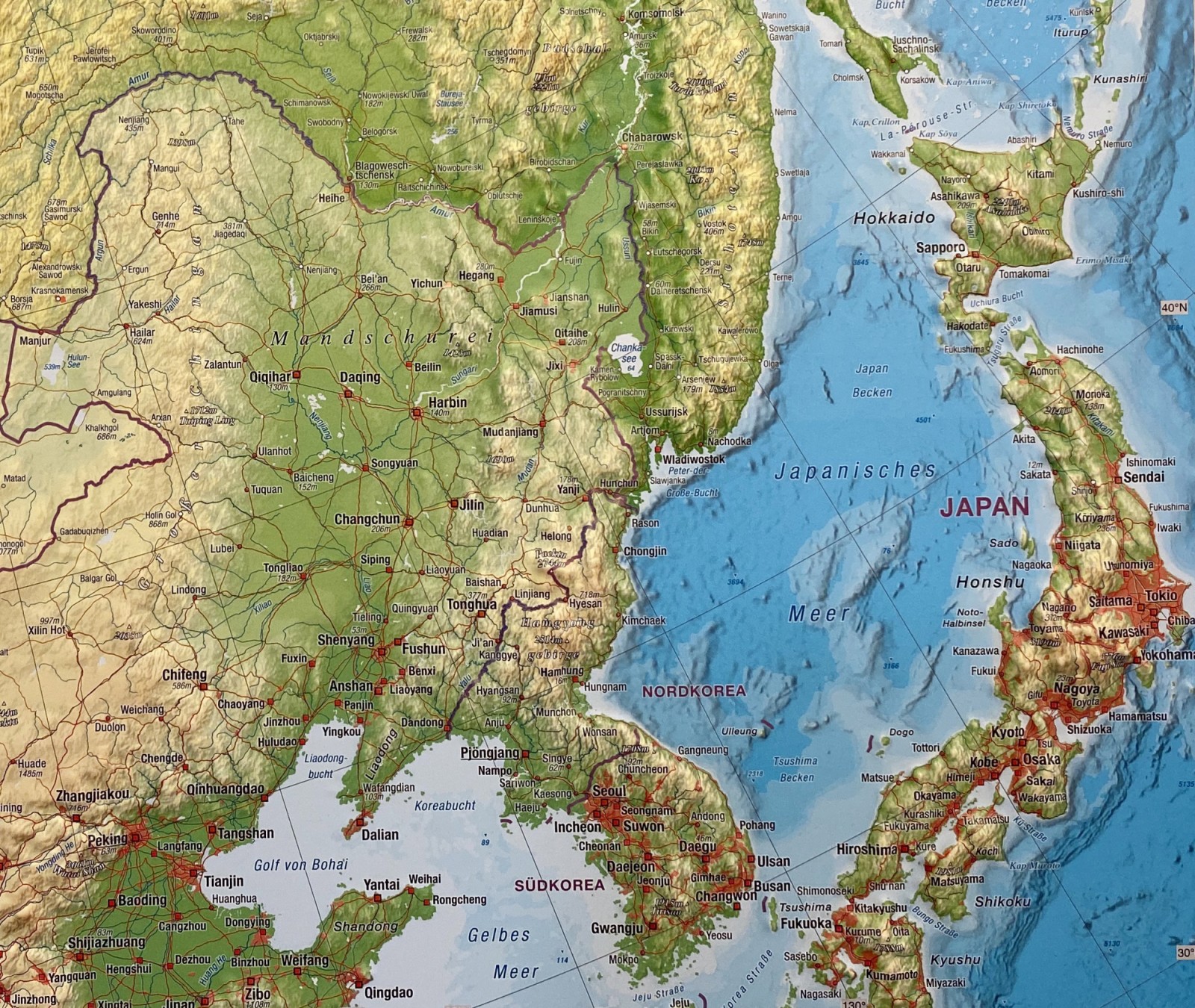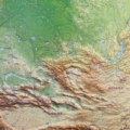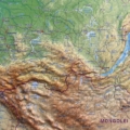 Ο χάρτης αποδίδει με εξαιρετική λεπτομέρεια το φυσικό ανάγλυφο με υψομετρικές αποχρώσεις, απεικονίζοντας με σαφήνεια πεδιάδες, οροσειρές, κοιλάδες και κορυφές, καθώς και υδρογραφικά στοιχεία όπως ποτάμια, λίμνες και φράγματα. Το οδικό δίκτυο ταξινομείται σε κατηγορίες, όπως αυτοκινητόδρομοι, κύριες οδικές αρτηρίες και το βασικό σιδηροδρομικό δίκτυο.