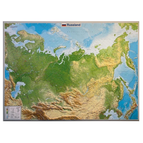 Ο εντυπωσιακός Τρισδιάστατος Ανάγλυφος Χάρτης της Ρωσίας (κλίμακα 1:11.000.000) έχει διαστάσεις 770×570×20 mm και διαθέτει συντελεστή υπερύψωσης περίπου 10x, προσφέροντας μια μοναδική τρισδιάστατη απεικόνιση του αναγλύφου της χώρας.