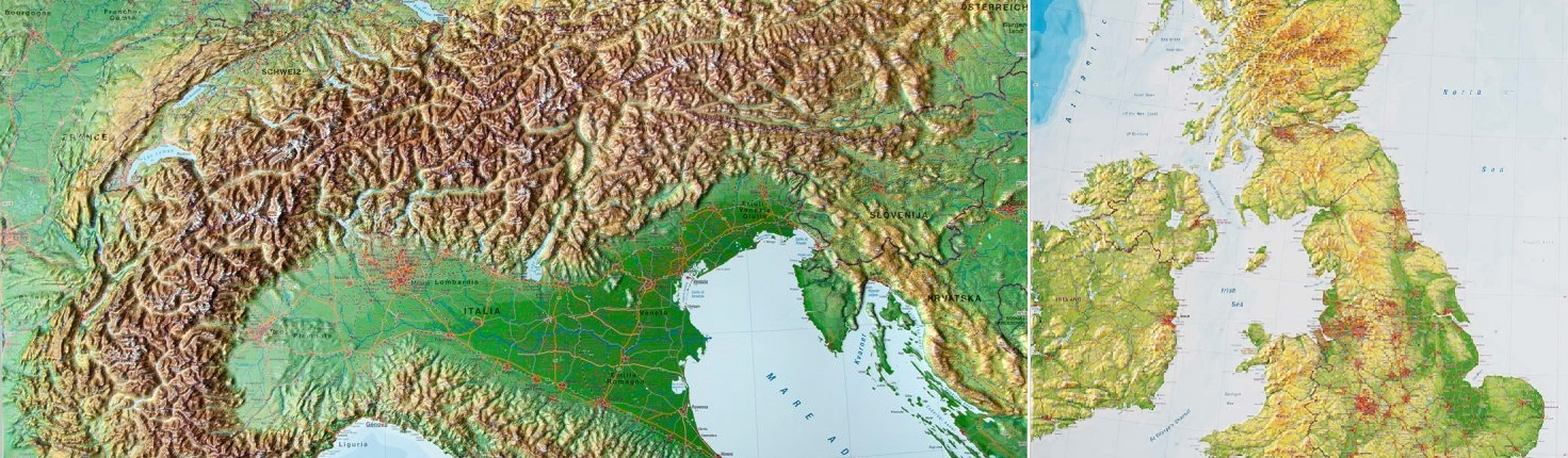 New 3D Relief Wall Maps of the Alps and the UK