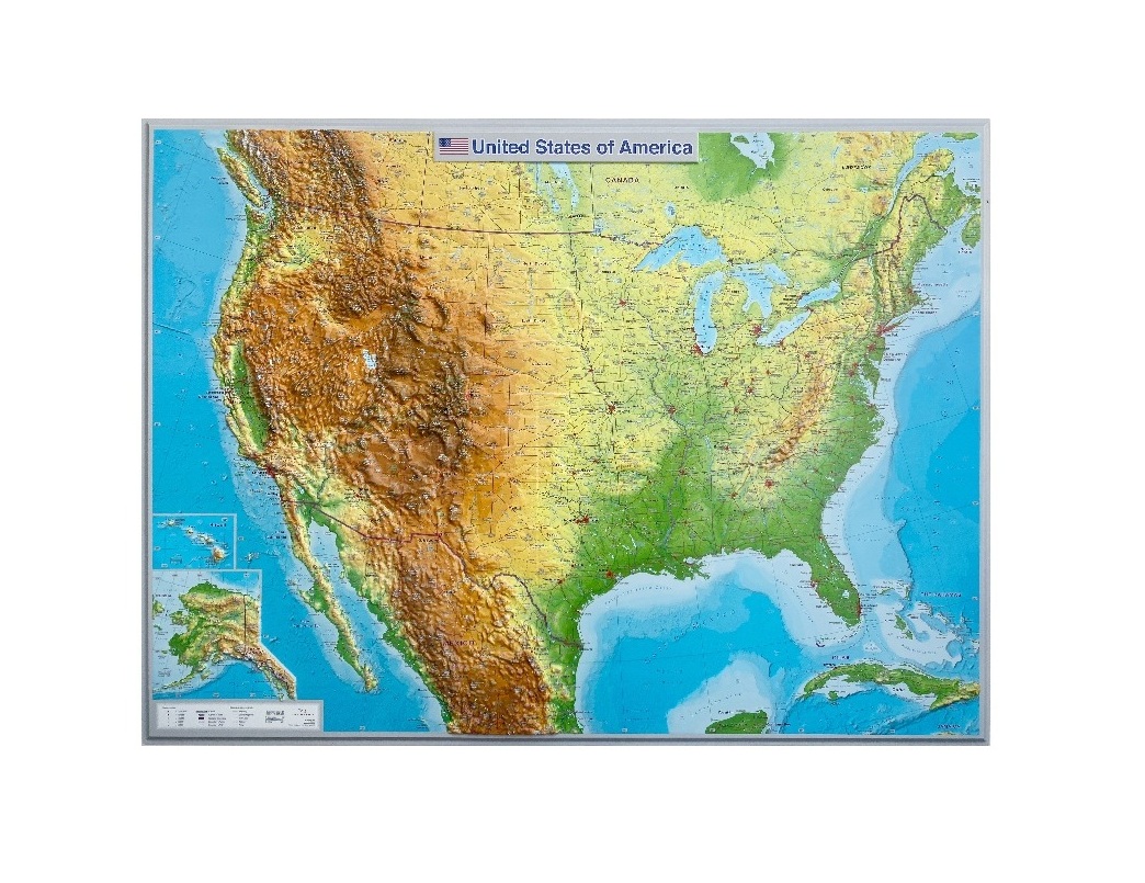 The 3D relief Map of the United States of America is an innovative cartographic product produced in English and developed in accordance with the highest international cartographic standards.