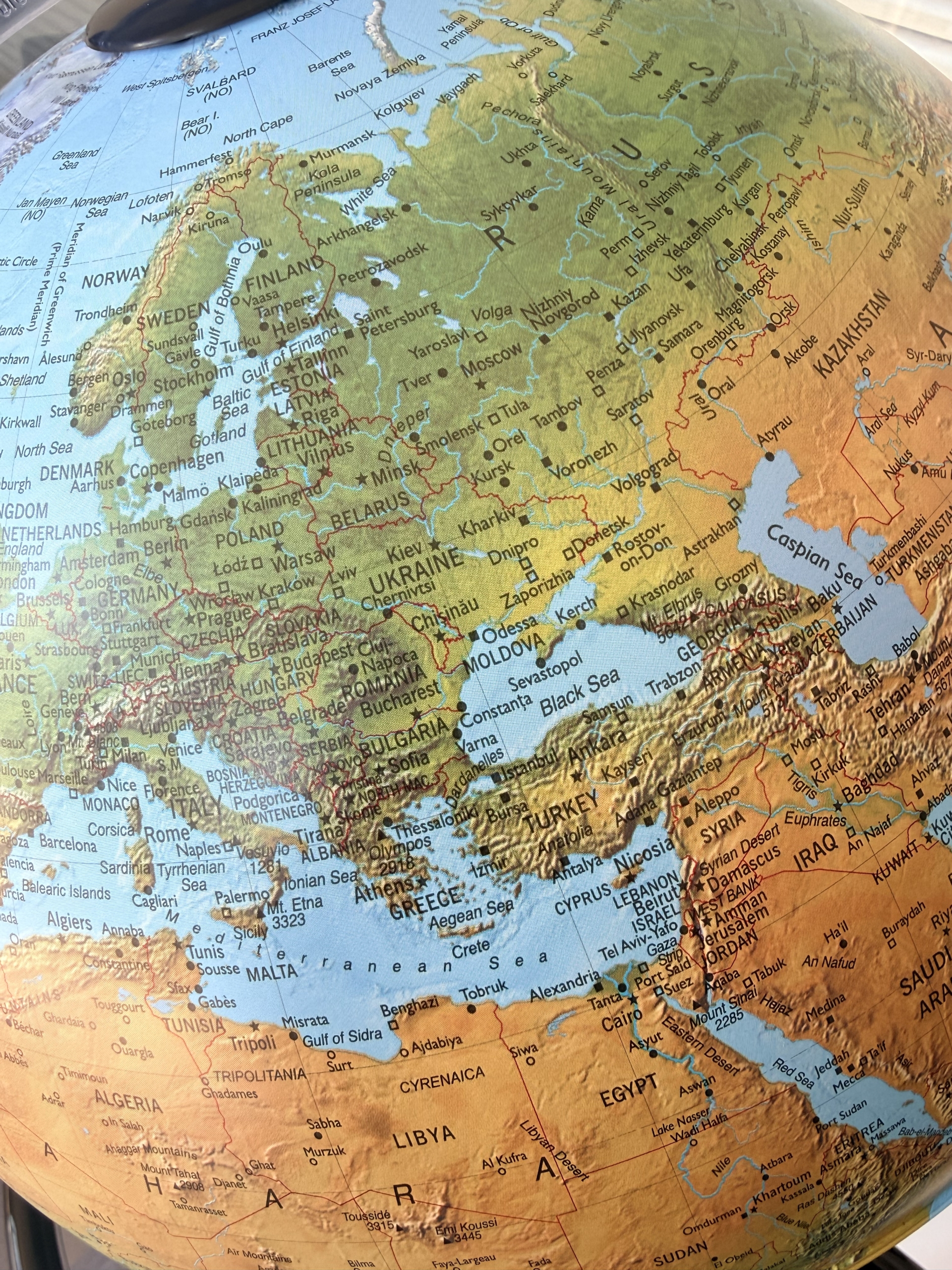 An impressive Physical Globe in large size 40cm and beautiful colors, which also includes the boundaries of all countries.